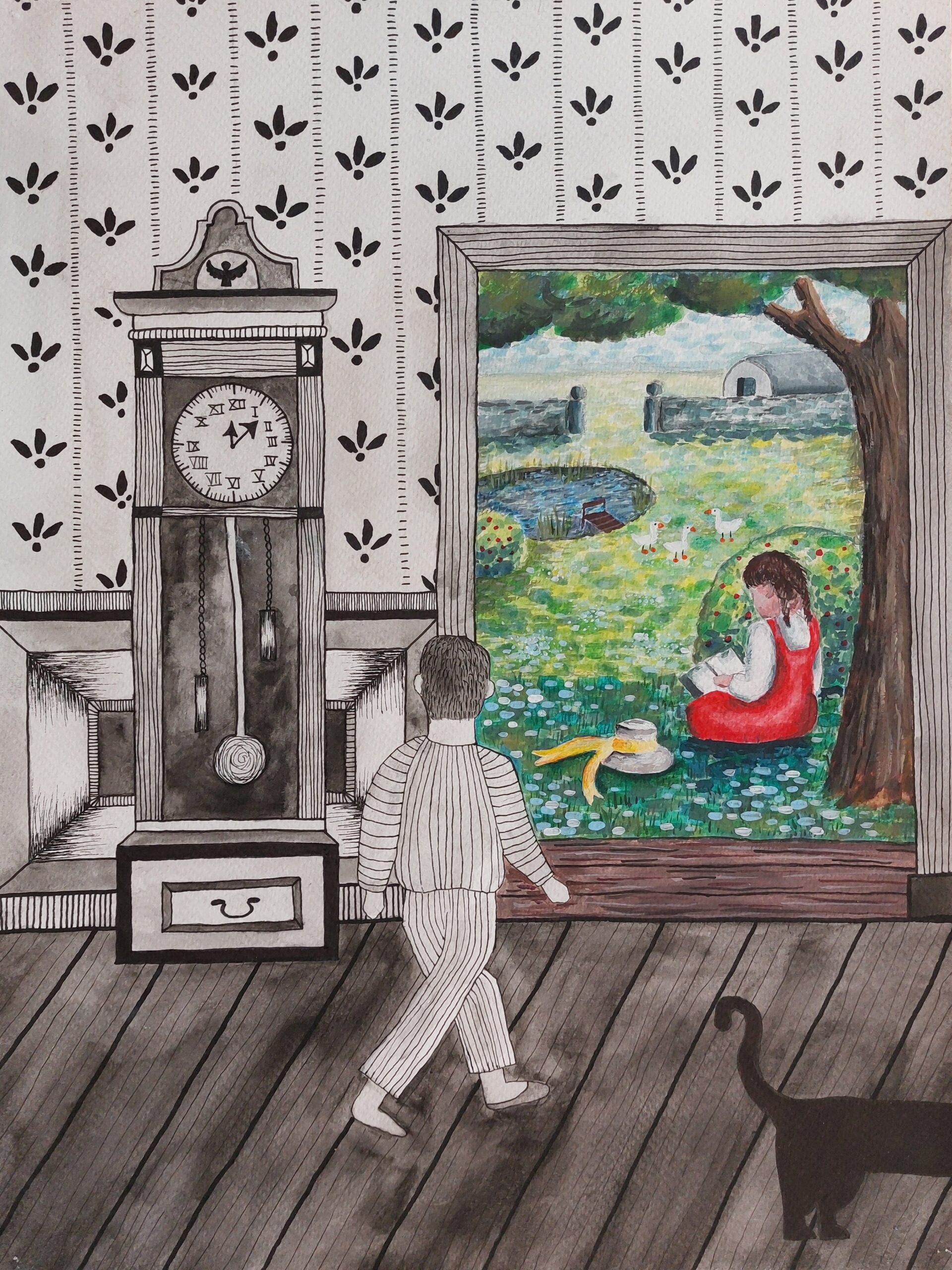 📸 Fotol on Rosmariini olümpiaaditöö – illustratsioon tema valitud kirjandusteosele (Tomi kesköine aed, P. Pearce)